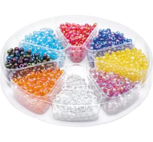 Perlen-Set in 8 verschiedenen Farbtönen mit irisierenden Effekten. Die Perlen haben einen Durchmesser von ca. 2 mm und sind in einer praktischen Dose sortiert. Sie erhalten ca. 48 gramm. Die Perlen eignen sich für eine Vielzahl von Bastel-Arbeiten: von Ohrringen und Ketten über Perlentiere bis hin zu den Perlensternen. Die Rocailles lassen sich auch mit verschiedenen Basteltechniken verarbeiten. Sie können gehäkelt, gefädelt oder vernäht werden. Gewicht: 48 g Durchmesser (außen): 2 mm Material: Kunststoff