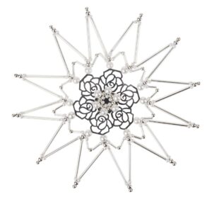 Schönes Perlenstern-Komplettset „“Vintage Rose““ zur Anfertigung von einem Rosenstern. Der fertige Perlenstern hat einen Durchmesser von ca. 11 cm. Das wunderschöne Perlenstern-Set enthält alles, was zur Anfertigung benötigt wird. Das Nachbasteln ist mit der bebilderten und leicht verständlichen Anleitung ganz einfach. Der Perlenstern sieht nicht nur im Fenster schick aus, sondern auch an einem Zweig, als Weihnachtsschmuck im Tannenbaum oder als Geschenkanhänger wird der der Perlenstern zu einem edlen Hingucker. Das Set enthält: Perlen in den Größen 4 mm und 6 mm Glasstifte in den Größen 6 mm und 19 mm Draht Metallanhänger Durchmesser (außen): 11 cm Material: Kunststoff, Metall