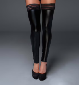 Powerwetlook Stockings F158 von Noir Handmade – elastische Wetlook Strümpfe mit Bändern und Silikonstreifen für sicheren Halt