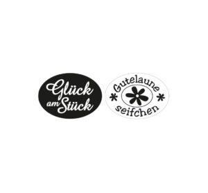 2 Reliefeinlagen in einer Packung: „“Glück am Stück““ und „“Gutelaune Seifchen““ sind ovale Label aus Naturkautschuk, die speziell für das persönliche kreative Seifen-Design entwickelt wurden. Beide Label sind je ca. 35 x 25 mm groß. Das hochwertige Material speziell so entwickelt, dass es im weichen Seifenmaterial für tiefe und klare Abdrucke entstehen. Sie sind immer wieder verwendbar. Länge: 25 mm Breite: 35 mm Material: Naturkautschuk