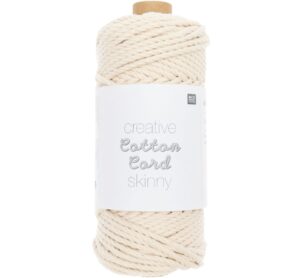 Tolles Rico Design Creative Cotton Cord Skinny Garn mit einer Länge von ca. 55 m aus 100 % Baumwolle. Entdecken Sie das Makrameegarn aus robusten Fasern in feiner Kordel-Optik. Dem Knüpfen von Wandbehängen, Taschen, Schlüsselanhängern und vielen weiteren Accessoires steht nichts mehr im Wege. Probieren Sie verschiedene Knüpftechniken aus und gelangen Stück für Stück zu Ihrem Handarbeits-Kunstwerk. Lauflänge: 55 m Stärke: 3 mm