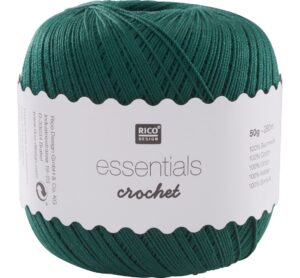 Das extradünne Garn Rico Design Essentials Crochet hat ein Gewicht von ca. 50 g und eine Lauflänge von ca. 280 m. Hergestellt aus 100 % Baumwolle. Der glatte Faden lässt sich am besten mit einer Nadelstärke von 1,75 – 2 verarbeiten. Eine tolle Garnqualität für filigrane Häkelprojekte. Perfekt für sommerlich leichte Tücher und Schals, aber auch ideal für kleine Häkelideen. Das Garn setzt einzigartige, schimmernde Akzente. Super für unifarbene Häkelstücke oder aber auch in bunten Farbkombinationen. Gewicht: 50 g Lauflänge: 280 m