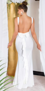 Rückenfrei Etui Maxi Träger Kleid mit Deko Schleife und Borte September 7, 2025 Sexy Kleid Preis: 36.675 EUR Zur Produktbeschreibung