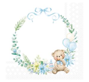 Tauche ein in die zauberhafte Welt der Serviettentechnik mit der Serviette „“Baby Teddy““. Das bezaubernde Motiv, ein Teddybär umrahmt von Blättern und Blüten, lädt zum kreativen Gestalten ein. Hebe damit Babygeschenke beim Gestalten von Bilderrahmen oder Schmuckschatullen hervor. Dank Serviettenlack überträgst du das Design mühelos auf Glas, Stoff, Metall und mehr. Mit 33 x 33 cm bietest die Serviette „“Baby Teddy““ eine vielseitige Anwendung. Mach deine DIY-Projekte unvergesslich und kreiere noch heute etwas Einzigartiges! Erfahre alles über die kreativen Gestaltungsmöglichkeiten rund um das Thema Serviettentechnik und entdecke weitere tolle Serviettenmotive, Rohlinge und Zubehör. Motiveinteilung viertel Motiv Inhalt: 20 Stück Länge: 33 cm Breite: 33 cm Material: Papier