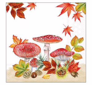Tauche ein in die zauberhafte Herbstwelt mit der Serviette „“Fly Agaric Group““! Das lebendige Motiv aus Fliegenpilzen, umgeben von buntem Herbstlaub, bringt die Magie der Natur direkt zu dir. Mit der Serviettentechnik kannst du das Motiv auf verschiedenste Materialien wie Glas, Metall oder Keramik übertragen. Gestalte einzigartige Kerzenhalter oder Schubladenfronten und verleihe deinem Zuhause eine persönliche Note. Maße: 33 x 33 cm, viertel Motiv. Bestelle jetzt und lass deiner Kreativität freien Lauf! Erfahre alles über die kreativen Gestaltungsmöglichkeiten rund um das Thema Serviettentechnik und entdecke weitere tolle Serviettenmotive, Rohlinge und Zubehör. Motiveinteilung viertel Motiv Inhalt: 20 Stück Länge: 33 cm Breite: 33 cm Material: Papier