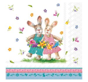 Erlebe den Frühling mit der Serviette „“Frühlingstanz““. Das zauberhaft gestaltete Motiv zeigt ein Hasenpaar, das von bunten Blumen umgeben ist. Die bunten Farben und die verspielte Motivgestaltung machen die Serviette zu einem Highlight für deine Frühlingsdekoration. Die Serviette hat eine Größe von 33 x 33 cm und ist somit perfekt für die Serviettentechnik geeignet. Mit Serviettenlack kannst du das wunderschöne Frühlingstanz-Motiv auf zahlreiche Untergründe übertragen, wie zum Beispiel auf Holz, Pappe, Karton oder Stoff. So kannst du einfache Gegenstände in tolle Frühlingsaccessoires verwandeln und deine Wohnung in eine fröhliche Oase verwandeln. Die Serviette ist einseitig bedruckt und hat auf der Rückseite ein sauberes Weiß, sodass das Motiv optimal zur Geltung kommt. Die Motiveinteilung ist viertel Motiv, was eine besonders schöne Gestaltung ermöglicht. In einer Packung befinden sich 20 Stück der Serviette „“Frühlingstanz““, sodass du ausreichend Material für deine Bastel- und Dekorationsprojekte hast. Überzeuge dich selbst von der Qualität und dem zauberhaften Motiv und hol dir jetzt die Serviette „“Frühlingstanz““ für deine Serviettentechnik. Viel Spaß beim Basteln und Dekorieren! Erfahre alles über die kreativen Gestaltungsmöglichkeiten rund um das Thema Serviettentechnik und entdecke weitere tolle Serviettenmotive, Rohlinge und Zubehör. Motiveinteilung viertel Motiv Inhalt: 20 Stück Länge: 33 cm Breite: 33 cm Material: Papier