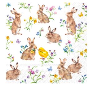 Kombiniere den Frühling mit dem süßen Osterfest und zaubere einzigartige Bastelwerke mit der Serviette „“Häschen und Küken““. Das Motiv zeigt niedliche Hasen, plüschige Küken und verschiedene bunte Blumen, die die perfekte Frühlingsstimmung verbreiten. Die Serviette hat eine Größe von 33 x 33 cm und der Packungsinhalt umfasst 20 Stück, was dir genügend Material für viele kreative Projekte bietet. Mit der Serviettentechnik kannst du das Motiv auf zahlreiche Untergründe wie zum Beispiel Holz, Pappe, Karton oder Stoff übertragen. Aber auch Gegenstände wie Vasen, Schachteln oder Kerzen können mit der Serviette „“Häschen und Küken““ zu echten Hinguckern werden. Durch das halbe Motiv-Design lässt sich die Serviette besonders vielseitig einsetzen – du kannst einzelne Motive auswählen und somit beispielsweise Karten oder Geschenktüten gestalten. Das frühlingshafte Serviettendesign machen die Serviette zu einem idealen Begleiter für die bunten Monate des Jahres. Bestelle sie noch heute und entdecke die vielseitigen Möglichkeiten der Serviette „“Häschen und Küken““. Frühlingsgefühle und Osterfreude garantiert! Erfahre alles über die kreativen Gestaltungsmöglichkeiten rund um das Thema Serviettentechnik und entdecke weitere tolle Serviettenmotive, Rohlinge und Zubehör. Motiveinteilung halbes Motiv Inhalt: 20 Stück Länge: 33 cm Breite: 33 cm Material: Papier