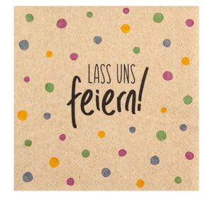 Feiere mit der Serviette „“Lass uns feiern““ ganz besondere Anlässe und gestalte sie mit einem fröhlichen Motto! Das bunte Konfettimuster und der Schriftzug „“Lass uns feiern!““ machen jede Feier zu einem unvergesslichen Highlight. Die Serviette ist perfekt für die Serviettentechnik geeignet und bietet unzählige wunderbare Möglichkeiten der kreativen Gestaltung. Die Serviette ist einseitig bedruckt und hat auf der Rückseite ein helles weißes Design. Sie ist 33 cm breit und 33 cm lang, perfekt für eine Vielzahl von Untergründen wie zum Beispiel Holz, Pappe, Karton, Stoff und vieles mehr. Mit Hilfe von Serviettenlack, lässt sich das Motiv ganz leicht und sauber auf die gewünschten Oberflächen übertragen. Doch die Serviettentechnik ist nicht nur für die Dekoration von Möbelstücken oder Geschenkverpackungen geeignet. Mit der Serviette „“Lass uns feiern““ kannst du auch Gläser, Teller oder Kerzen verzieren und somit deine Partytischdeko einzigartig und individuell gestalten. Auch für Upcycling-Projekte ist die Serviette bestens geeignet, zum Beispiel um alte Vasen oder Bilderrahmen im neuen Glanz erstrahlen zu lassen. Bestelle dir jetzt die Serviette „“Lass uns feiern““ und verleihe deiner Feier das gewisse Etwas! Erfahre alles über die kreativen Gestaltungsmöglichkeiten rund um das Thema Serviettentechnik und entdecke weitere tolle Serviettenmotive, Rohlinge und Zubehör. Motiveinteilung ganzes Motiv Inhalt: 20 Stück Länge: 33 cm Breite: 33 cm Material: Papier