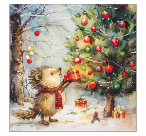 Entdecke die zauberhafte Welt der Serviette „“Present For Hedgehog““! Das liebevolle Motiv zeigt einen niedlichen Igel, der ein Geschenk unter einem festlich geschmückten Weihnachtsbaum platziert – ideal für eine gemütliche Adventsstimmung. Mit der Serviettentechnik verwandelst du Alltagsgegenstände wie Möbel oder Schubladen in einzigartige Kunstwerke. Einfach mit Serviettenkleber fixieren und mit Lack versiegeln. Die Maße von 33.0 x 33.0 cm und die viertel Motiv-Einteilung bieten vielseitige Gestaltungsmöglichkeiten. Lass deiner Kreativität freien Lauf und bestelle jetzt! Erfahre alles über die kreativen Gestaltungsmöglichkeiten rund um das Thema Serviettentechnik und entdecke weitere tolle Serviettenmotive, Rohlinge und Zubehör. Motiveinteilung viertel Motiv Inhalt: 20 Stück Länge: 33 cm Breite: 33 cm Material: Papier
