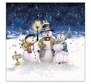 Bringe winterliche Magie in dein Zuhause mit der Serviette „“Singing Snowmen““. Die fröhlichen Schneemänner, die unter einem funkelnden Sternenhimmel Weihnachtslieder singen, zaubern sofort festliche Stimmung. Mit der Serviettentechnik kannst du dieses bezaubernde Motiv auf Oberflächen wie Glas, Metall oder Keramik übertragen. Verwandle einfache Möbel oder Schubladen in individuelle Kunstwerke. Die Serviette misst 33 x 33 cm und zeigt vier ähnliche Motive, perfekt für kreative Projekte. Lass deiner Fantasie freien Lauf und erwecke den Zauber der Weihnacht zum Leben! Erfahre alles über die kreativen Gestaltungsmöglichkeiten rund um das Thema Serviettentechnik und entdecke weitere tolle Serviettenmotive, Rohlinge und Zubehör. Motiveinteilung viertel Motiv Inhalt: 20 Stück Länge: 33 cm Breite: 33 cm Material: Papier