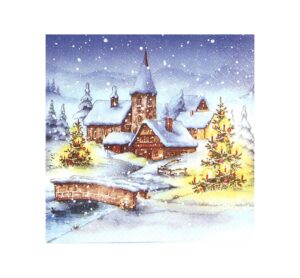 Verleihe deinem Weihnachtsprojekt mit der Serviette „“Weihnachten im Schnee““ von HOME FASHION den letzten Schliff! Diese Serviette zeigt ein weihnachtliches Winterdorf mit einem geschmückten Tannenbaum. Mit der Serviettentechnik kannst du das Motiv auf zahlreiche Untergründe wie Holz, Pappe, Karton, Stoff und vieles mehr übertragen. Die Serviette hat eine Breite von 33 cm und eine Länge von 33 cm. Sie ist einseitig bedruckt und die Rückseite ist weiß. Mit 20 Stück pro Packung hast du genug, um deine Weihnachtsdekoration zu vervollständigen. Überrasche deine Familie und Freunde mit einem einzigartigen Weihnachtsgeschenk, das du selbst gestaltet hast! Erfahre alles über die kreativen Gestaltungsmöglichkeiten rund um das Thema Serviettentechnik und entdecke weitere tolle Serviettenmotive, Rohlinge und Zubehör. Motiveinteilung halbes Motiv Inhalt: 20 Stück Länge: 33 cm Breite: 33 cm Material: Papier
