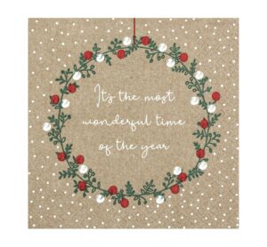Mit der Serviette „“Wonderful Time““ bringst du eine festliche Atmosphäre in deine Weihnachtsdekoration. Der hängende Weihnachtskranz mit Weihnachtskugeln und dem Schriftzug „“It’s the most wonderful time of the year““ ist perfekt geeignet für die Serviettentechnik. Egal ob auf Holz, Pappe, Karton, Stoff oder anderen Untergründen, das viertel Motiv eignet sich optimal dafür. Gestalte einzigartige Weihnachtsdekorationen mit der Serviette „“Wonderful Time““. Hol dir jetzt die festliche Serviette und verleihe deinem Zuhause eine besondere Note in der Weihnachtszeit! Erfahre alles über die kreativen Gestaltungsmöglichkeiten rund um das Thema Serviettentechnik und entdecke weitere tolle Serviettenmotive, Rohlinge und Zubehör. Motiveinteilung viertel Motiv Inhalt: 20 Stück Länge: 33 cm Breite: 33 cm Material: Papier