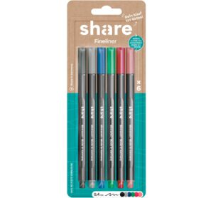 share Fineliner – Präzise schreiben und Gutes tun. Mit jedem Kauf unterstützt du eine Schulstunde.Klare Linien, feine Zeichnungen und ein Hauch von Nachhaltigkeit – das bieten die share Fineliner im 6er-Set. Mit ihrer Strichstärke von 0,4 mm und der stabilen, sehr feinen Spitze sind sie perfekt für präzises Schreiben, Skizzieren und Illustrieren geeignet. Die Fineliner kommen im schlichten Design daher und überzeugen mit ihrer ergonomischen Dreikantform und der gummierten Griffzone, die ein angenehm komfortables Schreiben ermöglichen. Neben der hochwertigen Verarbeitung bestehen sowohl das Gehäuse als auch die Verpackung zu mindestens 85 % aus nachwachsenden Rohstoffen. Sei kreativ und unterstütze gleichzeitig Bildung – hol dir jetzt das share Fineliner 6er-Set und werde Teil unserer nachhaltigen Community! Strichstärke: 0.4 mm Inhalt: 6 Stück