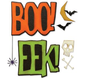 Hochwertige Sizzix Thinlits Stanzschablone „“Big Frights by Tim Holtz““ für alle herkömmlichen Stanz- und Prägemaschinen. Eine tolle Schablone zum Stanzen eines erschreckenden Halloween-Schriftzuges. Die Größe der Motive beträgt ca. 0,3 x 5,1 cm – 7,3 x 9,5 cm. Verzieren und Gestalten Sie mit diesem Motiv einzigartige und gruselige Kreativarbeiten zu Halloween. Klasse zum Anfertigen von Einladungen, Girlanden, Grußkarten, Cake-Toppern, Scrapbook-Arbeiten und vielem mehr. Auch super um aus Papiertüten schaurige Süßigkeiten-Tüten zu fertigen. Lassen Sie Ihrer Kreativität freien Lauf und basteln Dekorationen für die Halloween-Party. Mit weiteren Stanz- oder Prägeschablonen kombiniert, entstehen ganz individuelle Halloween-Basteleien, bei denen man das Fürchten bekommt. Motivgröße: 0.3 – 9.5 cm Inhalt: 12 Teile Material: Metall