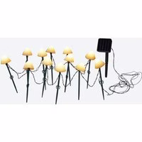Diese Solarstableuchten-Pilze von Home sorgen mit 12 LEDs und einer warmweißen Leuchtfarbe für eine stimmungsvolle Beleuchtung im Außenbereich. Die Gesamtlänge von ca. 4,2 m bietet vielseitige Dekorationsmöglichkeiten. Der Betrieb erfolgt per Akku, ideal für Garten oder Balkon. Pilz-Design für dekorative Akzente Solarbetriebene Lichterkette mit 12 Stäben Warmweiße LEDs für stimmungsvolles Licht Gesamtlänge ca. 4,2 m Akku 1x 1,2V AA 400mAh Ni-MH inklusive Einfache Platzierung im Außenbereich