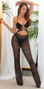 Spitzen Overall Gogo Neckholder Jumpsuit Transparent mit Cut Outs Bondage Look September 7, 2025 Sexy Gogo-Overall Preis: 29.925 EUR Zur Produktbeschreibung