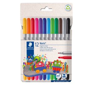 Ob du atemberaubende Kunstwerke erschaffen oder einfach nur deinen Alltag bunter gestalten möchtest, die Staedtler Noris Doppelfasermaler im 12er-Set sind deine zuverlässigen Partner für jedes kreative Abenteuer. Die Doppelfasermaler bieten dir viele wunderbare Gestaltungsmöglichkeiten. Mit einer stabilen, eindrucksicheren Spitze sind sie ideal für alle, die Wert auf Präzision und Vielseitigkeit legen. Die beiden Spitzen an jedem Stift ermöglichen es, zwischen der Linienbreite dünn ca. 1 mm und dick ca. 3 mm wählen zu können – kannst du sowohl feine Konturen als auch großzügige Flächen mühelos kolorieren. Dank des langlebigen PP-Schafts ist der Stift robust genug, um dir lange treu zu bleiben, während der Atemluftkanal in der Kappe nach ISO 11540 und BS 7272-1/2 für zusätzliche Sicherheit sorgt. Ein weiterer Vorteil: Die Farben sind leicht auswaschbar aus den meisten Textilien, so dass kleine Missgeschicke beim Zeichnen kein Problem sind. Ob für Kunstprojekte, Grußkarten oder einfach zum Entspannen – probiere die Anwendungsmöglichkeiten aus. Hol dir jetzt das Staedtler Noris Doppelfasermaler und tauche ein in eine Welt voller Farben und Möglichkeiten! Strichstärke: 1 – 3 mm Inhalt: 12 Stück
