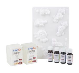 Kreiere deine eigenen einzigartigen 3D-Seifen! Mit dem Starter-Set „“3D Seifen““ eröffnen sich dir vielseitige Möglichkeiten, deine Ideen umzusetzen. Dieses umfassende Set liefert dir alles, was du benötigst, um sofort starten zu können. Zu deinem Set gehören 250 g transparente Seife und 250 g opake Seife, die du mit den enthaltenen Farben Gelb, Rot, Blau und Grün individuell gestalten kannst. Die mitgelieferte Gießform mit maritimen Motiven (Größe ca. 5 – 7,5 cm) verhilft dir zu beeindruckenden und detailreichen Werken. Dank der präzisen Anleitung ist das Anfertigen deiner eigenen Seifen so einfach wie noch nie. Entdecke, wie erfüllend es ist, selbstgemachte Seifen herzustellen – perfekt als persönliche Geschenkidee oder als besonderes Highlight in deinem Badezimmer. Ob für Geburtstage, als kleines Mitbringsel oder zur Entspannung beim Basteln – der Materialbedarf von nur ca. 150 g ermöglicht es dir, mit Leichtigkeit mehrere Seifen zu gestalten. Worauf wartest du noch? Bestelle jetzt das Starter-Set „“3D Seifen““, um in die bezaubernde Welt der Seifenherstellung einzutauchen! Anzahl Teile: 8