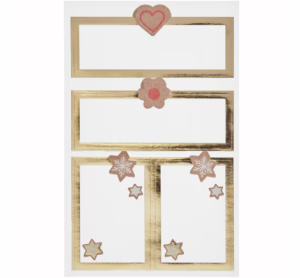 Verleihe deinen kreativen Projekten einen funkelnden Glanz mit diesen einzigartigen Stickern „“Etiketten Cookies““! Diese zauberhaften Aufkleber sind perfekt, um Geschenkverpackungen, Grußkarten oder sogar Adventskalender in der Advents- und Weihnachtszeit stilvoll zu verzieren. Mit ihrer edlen Hot Foil Veredelung in Gold ziehen sie alle Blicke auf sich. Die 3 Bogen mit atemberaubender Motive wie Sterne und Herzen, lassen deine Bastelideen erstrahlen. Diese selbstklebenden Etiketten sind aus FSC-zertifiziertem Papier gefertigt und verbinden Umweltbewusstsein mit ästhetischem Anspruch. Nutze die Sticker für personalisierte Geschenke oder festliche Dekorationen. Warte nicht länger und kreiere unvergessliche Momente – bestelle jetzt die Sticker „“Etiketten Cookies““ und bringe festliche Magie in dein Zuhause! Selbstklebend Material: Papier