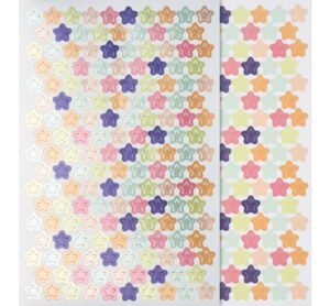 Wunderschöne Sticker „“Sterne““ in Pastellfarben und mit Metallic-Effekt. Die 648 Sterne haben einen Ø von ca. 7 mm und sollen in keiner Bastelkiste fehlen. Diese Sticker sind farblich aufeinander abgestimmt und lassen sich untereinander super kombinieren. Hervorragend um mit diesen Sternen ganz individuelle Grußkarten, Schmuckschachteln, Anhänger, Scrapbooks und vieles weitere zu gestalten. In Kombination mit Masking Tape können beispielsweise tolle Verzierungen auf Geschenkpapier oder Schachteln gezaubert werden. So entsteht schnell und einfach eine ganz persönliche Geschenkverpackung. Diese Sticker laden zum Kreativ werden ein. Selbstklebend Durchmesser (außen): 7 mm Material: Papier