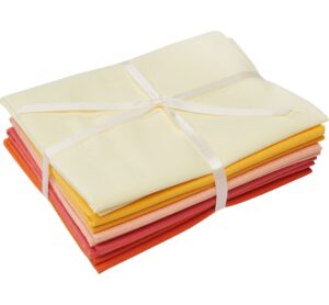Ein farbenfrohes Stoffpaket Patchy Uni „“Gelb-Orange““ mit 5 Zuschnitten à 45 x 55 cm und einem Stoffgewicht von ca. 145 g/m². Der Stoff ist aus 100 % Baumwolle. Eine mittelschwere Qualität, die sich prima verarbeiten lässt. Diese kleine Auswahl an Uni-Stoffen ist perfekt aufeinander abgestimmt und kommt in frischen Farben daher. Kombinieren Sie das Stoffpaket mit weiteren Uni- und Motivstoffen zu einzigartigen Patchwork-Projekten. Aber auch kleinere Näharbeiten wie Home-Deko, Aufbewahrungskörbchen, Sitzkissen oder Taschen sind mit diesen Stoffen ein Hingucker. Um Akzente zu setzen, verwenden Sie Knöpfe, Label und Bänder. So wird jedes Nähstück zu einem individuellen Lieblingsstück. Grammatur: 145 g/m² Inhalt: 5 Stück Länge: 55 cm Breite: 45 cm