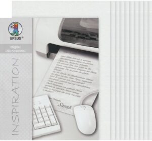 Mit der Strohseide „“Digital““ in DIN A4 kannst du individuelle Karten für besondere Anlässe gestalten und deinen Bastelprojekten eine moderne Note verleihen. Diese Strohseide ist ein wahres Multitalent und eignet sich perfekt für das Bedrucken mit Tintenstrahldruckern sowie für Kalligrafie, Urkunden, Einladungen, Briefe und vieles mehr. Die Strohseide besteht aus Maulbeerbaumfasern und hat ein einzigartiges Gewicht von 25 g/m². Mit ihrem handelsüblichen DIN A4 Format und dem Inhalt von 10 Blatt ist sie ideal für deine Bastelprojekte geeignet. Durch ihre hochwertige Qualität verleiht sie deinen Karten und anderen Bastelarbeiten ein edles Aussehen und lässt sie zum Hingucker werden. Durch die Verwendung von Strohseide kannst du deine Kreativität noch mehr ausleben und deinen Bastelarbeiten einen individuellen Touch verleihen. Probiere verschiedene Drucktechniken und Gestaltungsmöglichkeiten aus und kreiere einzigartige Karten, Einladungen oder andere DIY-Projekte. Mit dieser Strohseide kannst du auch tolle Hintergründe kreieren und deine Bastelarbeiten auf eine ganz neue Ebene heben. Gestalte deine Bastelprojekte mit der Strohseide „“Digital““ ganz individuell und bestelle noch heute. Verleihe deinen Kreationen eine moderne Note und bleibe mit deinen DIY-Projekten im Trend! Grammatur: 25 g/m² DIN Format A4
