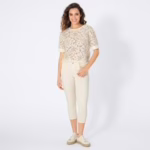 Diese Damen-Caprihose von Laura Torelli Collection bietet durch ihre 3/4-Länge und den elastischen Bund optimalen Tragekomfort. Die Maschenware sorgt für Bewegungsfreiheit, ideal für Freizeitaktivitäten. Der hohe Baumwollanteil gewährleistet ein angenehmes Hautgefühl. Modische Allover-Print-Capri-Leggings 3/4-Länge für vielseitigen Stil Elastischer Bund für perfekten Sitz Mit hohem Baumwollanteil OEKO-TEX® Standard 100 zertifiziert