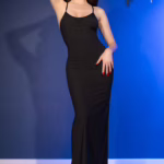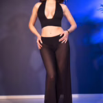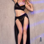 Verführerisches Babydoll aus transparentem schwarzem Tüll mit roter Spitze, offenen Bügel-Cups, Metallherz-Dekor und passendem Spitzen-String sexy Dessous