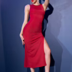 Langes Kleid CR4445 grün von Chilirose betont Deine Kurven mit verführerischem Ausschnitt, hohem Beinschlitz und elegantem Schnitt – Grünes Maxikleid aus Stretch mit Cut-Out und Beinschlitz