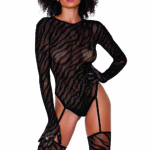 Verführerischer Netz-Bodystocking im Schlangenhaut-Look mit verstellbarem Druckknopfverschluss, integrierten Strumpfhaltern und Netzstrümpfen – Sexy Bodystocking