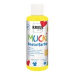 MUCKI Bastelfarbe, 80 ml ist eine matte leuchtende, gebrauchsfertige Farbe, die speziell für Kinder ab 3 Jahren entwickelt wurde. Die Kinder Bastelfarbe lässt sich leicht verstreichen und trocknet schnell auf. Sie kann auf Papier, Karton, Holz, Keilrahmen, Stein, Terrakotta, Glas und Modelliermasse vermalt werden. Die deckende Farbe ist wasserverdünnbar. MUCKI Bastelfarbe trocknet nicht wasserfest auf, lässt sich leicht von der Haut abwaschen und ist ab 30 °C sogar gut auswaschbar. Füllmenge: 80 ml Geeignet für Kinder