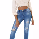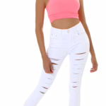 High Waist Skinny Destroyed Jeans mit Risse – Sexy Highwaist-Jeans im Destroyed-Style
