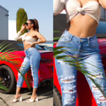 Low Waist Casual Skinny Jeans mit Deko Schleifen – Sexy Sommer-Jeans