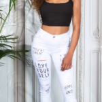 Röhren Skinny Jeans im Destroyed Look mit Schriftzug Prints – Sexy Destroyed Jeans