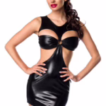 Ärmelloser Wetlook Overall in Schwarz mit Kapuze und Reißverschluss vorn figurbetontes Design für heißen Style und sportlich-coole Outfits