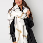 Wollweißer Winterschal mit Streifenmuster – Sexy Winterschal mit Streifenmuster