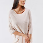 Stylisches Uni Feinstrick Oversize Long Shirt mit Rundhals-Ausschnitt und praktischen Taschen