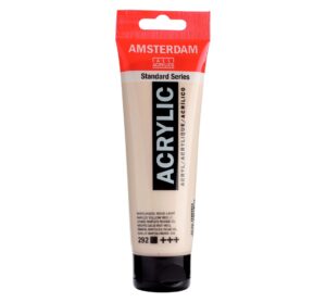 Talens AMSTERDAM Acrylfarbe mit einer Füllmenge von 120 ml in großartigen Farben. Die Standardserie bietet alles was Sie brauchen, wenn mit Acrylfarben gemalt werden soll. Eine Acrylfarbe in Künstlerqualität, in brillanten Farbtönen, die untereinander gemischt werden können. Eine Farbe mit einer je nach Farbton transparenten bis hohen Deckfähigkeit. Durch die Verwendung reiner, stabiler Pigmente hat die Farbe eine sehr hohe Lichtechtheit. Dadurch haben Ihre Kunstwerke auch nach vielen Jahren noch die Originalfarbe. Die Farben bieten einen robusten und flexiblen Farbfilm aufgrund der Verwendung eines 100%-igen Acrylharzes als Bindemittel. So ist das Resultat langlebig und bleibend. Die Farbe ist geruchsarm und mit Wasser verdünnbar. Dünne Schichten trocknen innerhalb einer halben Stunde. Entdecken Sie die fabelhaften Möglichkeiten die sich für das Arbeiten mit dieser tollen Acrylfarbe ergeben und wagen Sie sich an Ihre neuen Projekte. Die Farbe eignet sich zum Bemalen von Holz, Papier, Keilrahmen, Karton, Keramik, Metall, Ton und vielem mehr. Sogar für die Wandmalerei können diese Farben verwendet werden. Füllmenge: 120 ml Lösungsmittelfrei