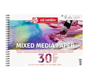 Das hochwertige Talens Mixed Media Paper ist in verschiedenen DIN-Formaten erhältlich. Es hat eine Grammartur von 250 g/m². Der Mixed Media Paper Block hat eine Spiralbindung und enthält 30 Blatt weißes hochwertiges Aquarell- und Acrylpapier. Das Mixed Media Paper ist für Farben wie Ölfarbe, Aquarellfarbe, Acrylfarbe, Pastellfarben oder auch zum Skizzieren, Malen und Zeichnen mit Bunt- und Filzstiften perfekt geeignet. Es können natürlich auch verschiedene Techniken miteinander kombiniert werden. Das Aquarell- und Acrylpapier ist perforiert, somit ist ein einfaches Heraustrennen der einzelnen Blätter gegeben. Grammatur: 250 g/m² DIN Format: Array Material: Papier