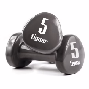 <p>Kurzhanteln sind sehr gute Allrounder, mit ihnen lassen sich vor allem die Bizeps- und Trizeps Muskulatur stärken. Aber auch für andere Körperregionen, wie zum Beispiel die Schultern, sind sie ein idealer Trainingsbegleiter. <br />Tiguar Dumbbells sind mit Vinyl ummantelt, so liegen sie angenehm in der Hand und der Boden ist geschützt, sollten sie mal runterfallen. Zudem lassen sie sich einfach reinigen. <br /><br />Die Abstufungen der Gewichte sind farblich gut gekennzeichnet. <br /><br />Zur Auswahl stehen:<br />2x 0.5kg – lila<br />2x 1 kg – blau<br />2x 1.5 kg – oliv<br />2x 2 kg – grau<br />2x 3 kg – raspberry<br />2x 4 kg – aubergine<br />2x 5 kg – dunkelgrau<br /><br />Lieferung: <strong>2x 5 kg – dunkelgrau</strong></p>