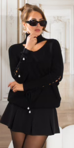 Turtleneck Jumper Rollkragen Pulli Oversize Rippstrick Pullover Strickpullover mit V-Cutouts Deko Perlen und Ärmel Schnürung September 7, 2025 Stylischer Oversize-Pullover mit Rollkragen, V-Cutout und Perlen-Zier-Schnürung Preis: 18.675 EUR Zur Produktbeschreibung