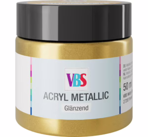 Entdecke hier unsere Metall Effektfarbe VBS Acryl Metallic! Diese Farbe ist besonders hoch pigmentiert und lässt sich dank ihrer angenehmen Konsistenz mühelos zu einer satten Farbe aufstreichen. Die Farbe ist sehr deckend und trocknet zu einer glänzenden Metallic-Oberfläche auf. Die auf Wasserbasis hergestellte Farbe trocknet wasserfest und lichtecht auf. Sie ist zudem geruchsneutral und umweltfreundlich. Du kannst sie mit Pinsel, Schwamm oder Stupfpinsel auftragen und nach Belieben untereinander mischen, um deine eigenen Farbtöne zu kreieren. Verwende VBS Acryl Metallic für das Bemalen von Holz, Stern, Papier, Metall und mehr. Stelle sicher, dass die Oberfläche, die du bemalen möchtest, trocken, staub- und fettfrei ist. Dann erhältst du optimale Ergebnisse. Verschönere Möbel, gestalte einzigartige Leinwandbilder oder peppe Dekorationsobjekte auf – die Möglichkeiten sind nahezu grenzenlos. Bestelle jetzt und verwandle deine Ideen in beeindruckende Kunstwerke mit VBS Acryl Metallic! Füllmenge: 50 mL Lösungsmittelfrei