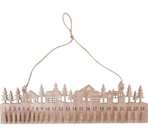 Ein zauberhafter VBS Adventskalender mit Klammern. Der Kalender hat eine Größe von ca. 45 cm x 12,5 cm mit einer Stärke von ca. 4 mm. Das Material besteht aus furniertem Sperrholz und Holz. Der Kalender ist detailreich verarbeitet mit verschiedenen Kirchen-Motiven, Tannenbäumen, Zahlen von 1 bis 24 und 24 Holz-Klammern. Oben am Adventskalender ist ein Juteband zum Aufhängen angebracht. Hier können Sie kreativ werden! Dieser Kalender bietet Ihnen viele Möglichkeiten der Gestaltung. Verwandeln Sie den Kalender mit Metallic-Farben, Chalky Color, Bastelfarben, Blattmetall und Streuteilen in ein Einzelstück. Kombinieren Sie dazu kleine Jutesäckchen oder Päckchen, die mit einer Schnur an die Klammern gehängt werden. Auf der Rückseite können Sie sogar noch eine Micro LED-Lichterkette anbringen, so bekommt die Dekoration einen gemütlichen Adventsglanz. Eine fabelhafte Geschenkidee für große und kleine Kinder! Länge: 45 cm Höhe: 12.5 cm Material: Sperrholz, Holz Stärke: 4 mm