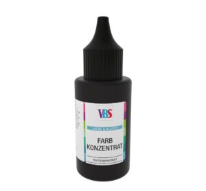 VBS Farbkonzentrat für sämtliche Kreativ-Gießmassen, Beton und Lacke. Das Farbkonzentrat besitzt eine Dichte von ca. 1,28 g/m3. und enthält 25 ml. Hochpigmentiertes Färbemittel auf wässriger Basis. Kann als Malfarbe mit Wasser verdünnt oder unverdünnt als Färbemittel verwendet werden. Die Farben sind untereinander mischbar. Diese Farblösungen eignen sich hervorragend zum Vermischen mit Lacken, Dispersionen, Kreativ-Gießmassen und Beton. Dazu werden die Farben direkt dem zu färbenden Produkt zugegeben oder zuerst in das Mischwasser gemischt und anschließend in das Gießpulver eingearbeitet. Die Farbflaschen sind mit einer kleinen Auslaufdüse sowie Schutzkappe ausgestattet. Dadurch lassen sich die benötigten Farbmengen einfach Tropfenweise entnehmen. Die Menge der Farbe die zugegeben werden muss ist abhängig von der gewünschten Farbintensität. Bei Produkten die pulverförmig sind ca. 6 – 8 %, bei Flüssiglacken ca. 2 – 5 % und bei Klebstoffen 3 – 6 %. Füllmenge: 25 ml
