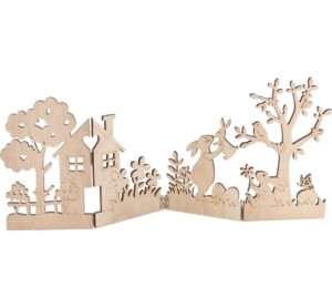Du suchst nach einem einzigartigen und kreativen Geschenk zu Ostern? Dann ist die VBS Holz-Silhouette „“Hasen im Garten““ genau das Richtige für dich! Diese Holz-Dekoration ist eine wunderschöne Ergänzung für jedes Zuhause und eine tolle Geschenkidee. Mit einer Höhe von 19,5 cm und einer Länge von 44,5 cm ist die Dekoration aus Pappelsperrholz ein echter Hingucker. Sie ist einseitig dekoriert und mit Scharnieren zum Aufklappen versehen. Auf der Vorderseite ist ein süßes Motiv mit Hasen, Bäumen, Haus und Blüten zu sehen. Diese Holz-Silhouette ist ein echtes Multitalent: Du kannst sie bemalen, bekleben oder dekorieren mit verschiedenen Farben, Papieren oder anderen Materialien. Auch mit der Servietten- oder Decoupage-Technik kannst du deiner Kreativität freien Lauf lassen und deine eigene, einzigartige Dekoration gestalten. Länge: 44.5 Höhe: 19.5 cm Material: Pappelsperrholz Stärke: 0.5 cm