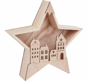 Du liebst es, in der Vorweihnachtszeit kreativ zu sein und möchtest dein Zuhause mit selbstgemachten Dekorationen verschönern? Dann haben wir das perfekte Produkt für dich: Der VBS Holzbausatz „“Holzstern mit Häuserfront““! Dieser furnierte Sperrholzbausatz besteht aus insgesamt 4 Teilen und ist ideal zum Bemalen und Dekorieren geeignet. Mit Bastelfarben, Dekoschnee, Glitter und vielen anderen Materialien kannst du einen individuellen Stern mit Häuserfront gestalten. Der Holzbausatz zeigt ein tolles Motiv und ist somit perfekt für die Weihnachtszeit geeignet. Die Maße betragen 27,5 x 5,3 x 27,5 cm. Dekoriere den Stern auf dem Tisch, Fensterbank oder an der Wand. Auch schön in Kombination mit weiteren Bausätzen und Steckmotiven. Der Kreativität sind keine Grenzen gesetzt! Du fragst dich, was du mit dem Holzbausatz alles machen kannst? Hier sind ein paar Ideen: Du könntest den Stern innen mit einer Lichterkette in stimmungsvolles Licht tauchen. Auch das Anbringen von echten Ästen oder Zweigen verleiht dem Bausatz eine natürliche Note. Oder du verwandelt den Stern mittels Servietten- Decoupage-Technik in ein farbenfrohes Kunstwerk. Du musst dich nur entscheiden, welche deiner kreativen Ideen du umsetzen möchtest. Also, worauf wartest du noch? Lass dich von unserem Holzbausatz inspirieren und schaffe mit Leichtigkeit eine einzigartige und zauberhafte Dekoration für dein Zuhause. Bestelle jetzt den VBS Holzbausatz „“Holzstern mit Häuserfront““ und verwirkliche deine kreativen Ideen. Anzahl Teile: 4 Länge: 27.5 cm Breite: 5.3 cm Höhe: 27.5 cm Material: Sperrholz