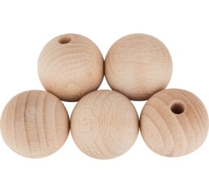 Rohholzkugeln mit einem Ø von ca. 30 mm mit einer ca. 6 mm Halbbohrung in ausgezeichneter Qualität. Gefertigt sind die Rohholzkugeln aus Buchenholz, geschliffen und poliert. Der Schleif- und Polierprozess ist besonders hochwertig und fein. Ein hohes Qualitätsmerkmal ist außerdem, dass die Kugeln maßgetreu und formstabil sowie Made in EU sind. Für die individuelle Gestaltung mit zum Beispiel Bastelfarben, Finelinern, Lasuren, Klebstoffen oder der Brandmalerei sind diese Kugeln bestens geeignet. Gestalten Sie natürliche Wohnraumdekorationen oder niedliche Figuren wie Wichtel & Co. Auch als Knauf für Schränkchen, Schubladen und vieles mehr können diese Allrounder verwendet werden. Inhalt: 5 Stück Durchmesser (außen): 30 mm Material: Buchenholz