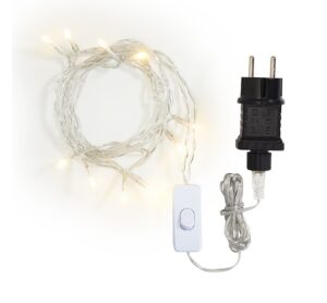 Bringe dein Zuhause zum Strahlen mit unserer VBS LED-Lichterkette mit Schalter. Diese Lichterkette, bestehend aus 10 warmweißen LEDs, sorgt für eine wohlige Atmosphäre und lädt zum Träumen ein. Mit einer Gesamtlänge von ca. 2,95 m und einem praktischen Schalter für einfaches Ein- und Ausschalten ist sie ideal für all deine kreativen Projekte geeignet. Mit ihrem Abstand von 15 cm zwischen den LEDs und der sicheren Kreisschaltung aus hochwertigem Kunststoff und Metall überzeugt die Lichterkette auf ganzer Linie. Die Farbe von 2700 Kelvin verleiht jedem Raum eine stilvolle und gemütliche Note. Perfekt für dein nächstes Deko-Projekt: Verwende sie für leuchtende Weihnachtssterne, charmante Leuchtkugeln oder floristische Gestecke, ohne dir Sorgen um Hitzeentwicklung zu machen. Die 150 cm lange Zuleitung bis zum Schalter bietet Flexibilität bei der Platzierung und Anwendung. Gestalte inspirierende Beleuchtungsakzente in deinem Zuhause! Bestelle noch heute die VBS LED-Lichterkette und bringe das Extra an Wärme und Licht in deine kreativen Bastelprojekte. Verwandle jeden Raum in ein leuchtendes Kunstwerk! Anzahl Lampen: 10 Schalter Inhalt: 1 Stück Material: Kunststoff, Metall