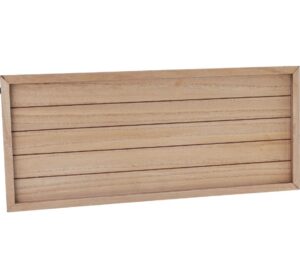 Ein VBS Plankenschild / Platte mit Aufhängern in der Größe 50 x 22 x 2 cm. Die Platte besteht aus MDF-Holz und die Front ist mit Holz furniert. An der Rückseite befinden sich 2 Aufhänger mit denen die Platte ganz einfach befestigt werden kann. Verwandeln Sie dieses Plankenschild in einer wundervolle Dekoration für Ihre Wohnräume. Hier stehen Ihnen viele Möglichkeiten der Gestaltung offen. Verwenden Sie beispielsweise Tafelfarbe, Chalky Color, Bastelfarben, Effektfarben und vieles mehr. Aber auch die verschiedenen Techniken wie Servietten-Technik oder Decoupage-Technik lassen sich hier umsetzen. Nun liegt die Entscheidung ganz bei Ihnen, welches Aussehen soll die neue Wanddekoration bekommen? Länge: 50 cm Breite: 22 cm Höhe: 2 cm Material: MDF-Holz