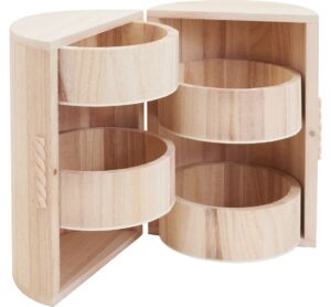 Das VBS Schränkchen mit 4 Fächern ist ein wahres Schmuckstück für deine Bastel- und Hobbyecke! Mit seinem außergewöhnlichen, runden Design und den 4 praktischen Fächern (Innenhöhe : ca. 4 cm) bietet es nicht nur eine tolle Aufbewahrungsmöglichkeit, sondern ist auch ein echter Hingucker in deinem Zuhause. Das Schränkchen ist aus unbehandeltem Rohholz gefertigt und hat einen Durchmesser von 15 cm sowie eine Höhe von 20,5 cm. Dadurch passt es perfekt auf jeden Tisch oder Regal und bietet dennoch ausreichend Platz für deine Bastelutensilien, Schmuck oder andere kleine Schätze. Dank seiner zeitlosen Optik ist das Schränkchen das ganze Jahr über einsetzbar und passt sich jeder Jahreszeit und jedem Einrichtungsstil an. Ob im Frühling mit bunten Blumen verziert, im Sommer mit Muscheln und Sand dekoriert oder im Winter mit Tannenzweigen geschmückt – deiner Kreativität sind keine Grenzen gesetzt. Du kannst das Schränkchen auch ganz individuell gestalten und bemalen, bekleben oder mit der Serviettentechnik verzieren. So wird es zu einem einzigartigen Unikat und passt perfekt zu deinem persönlichen Stil. Durchmesser (außen): 15 cm Höhe: 20.5 cm Material: Rohholz